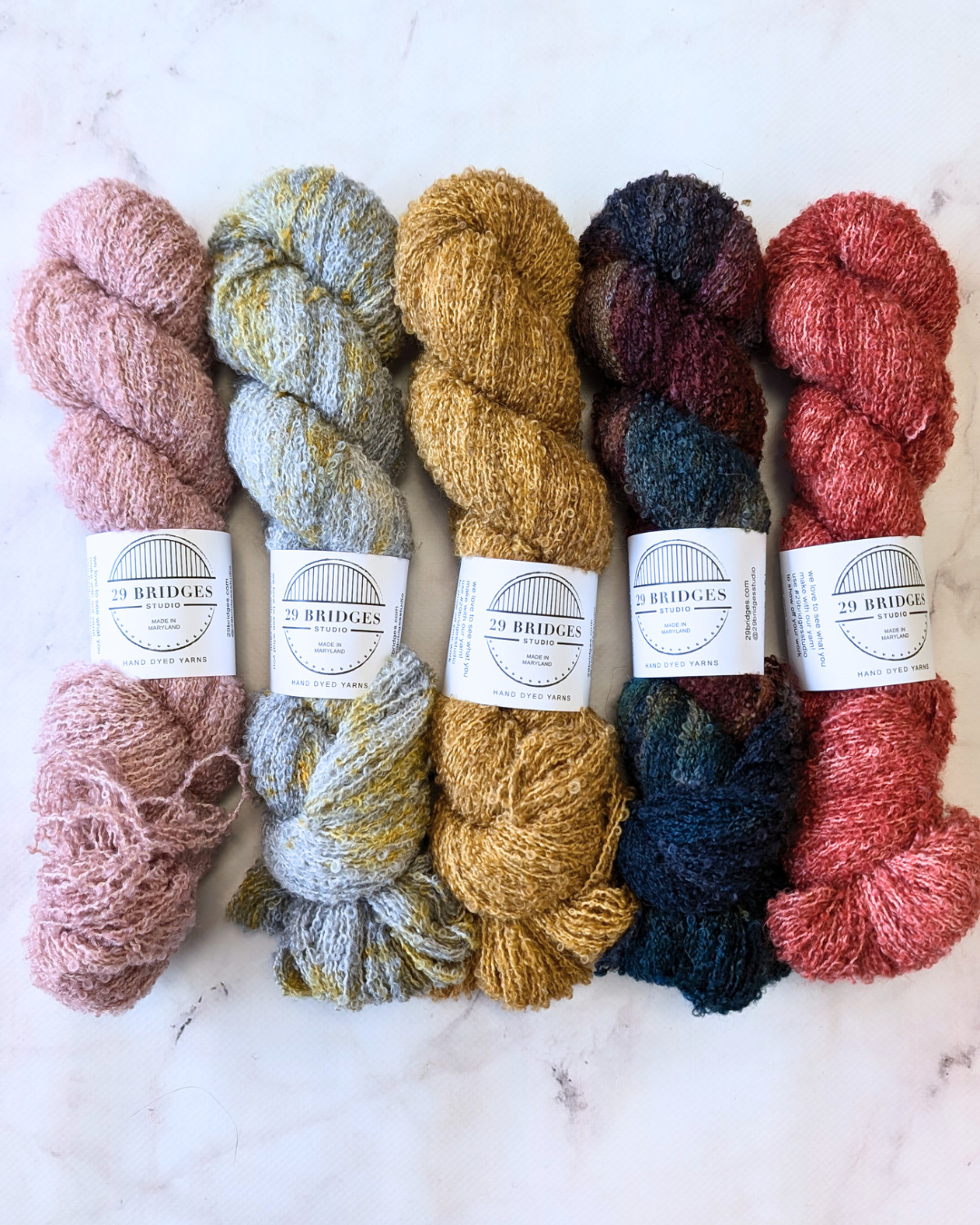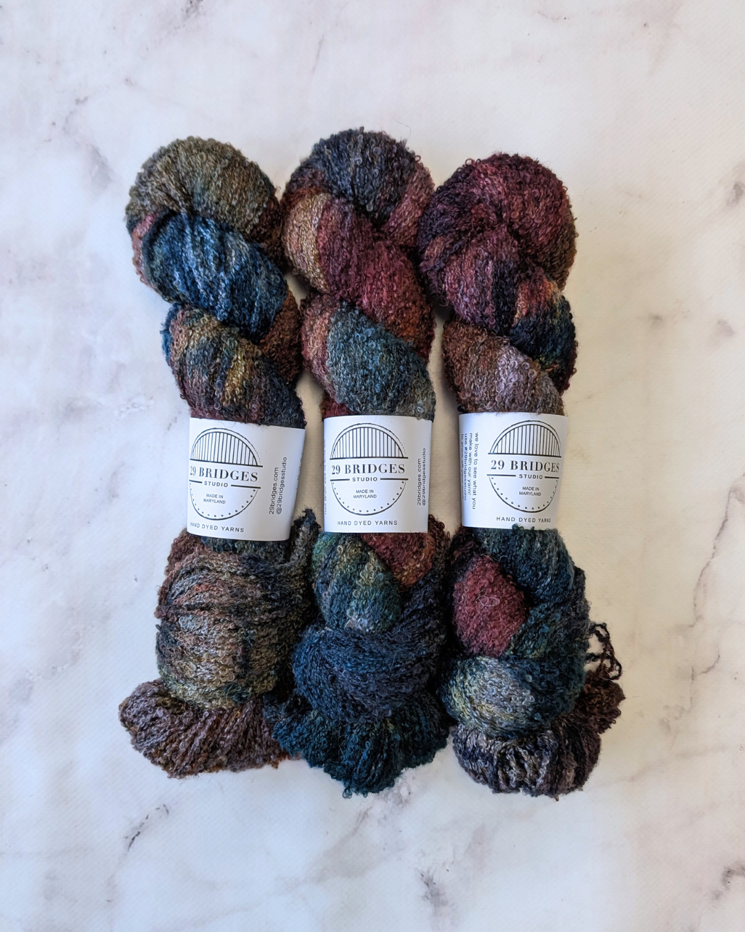 29 Bridges Boucle is hand-dyed in small batches in Maryland.