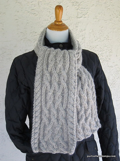 Made out of Juniper Moon Farm Herriot Great, which is 100% baby alpaca, this scarf will be the softest one you own. Since it's chunky, it knits up super quickly as well. Kits includes three skeins of yarn and the pattern. Knit on a size 10.5 needle, either straight or circular.