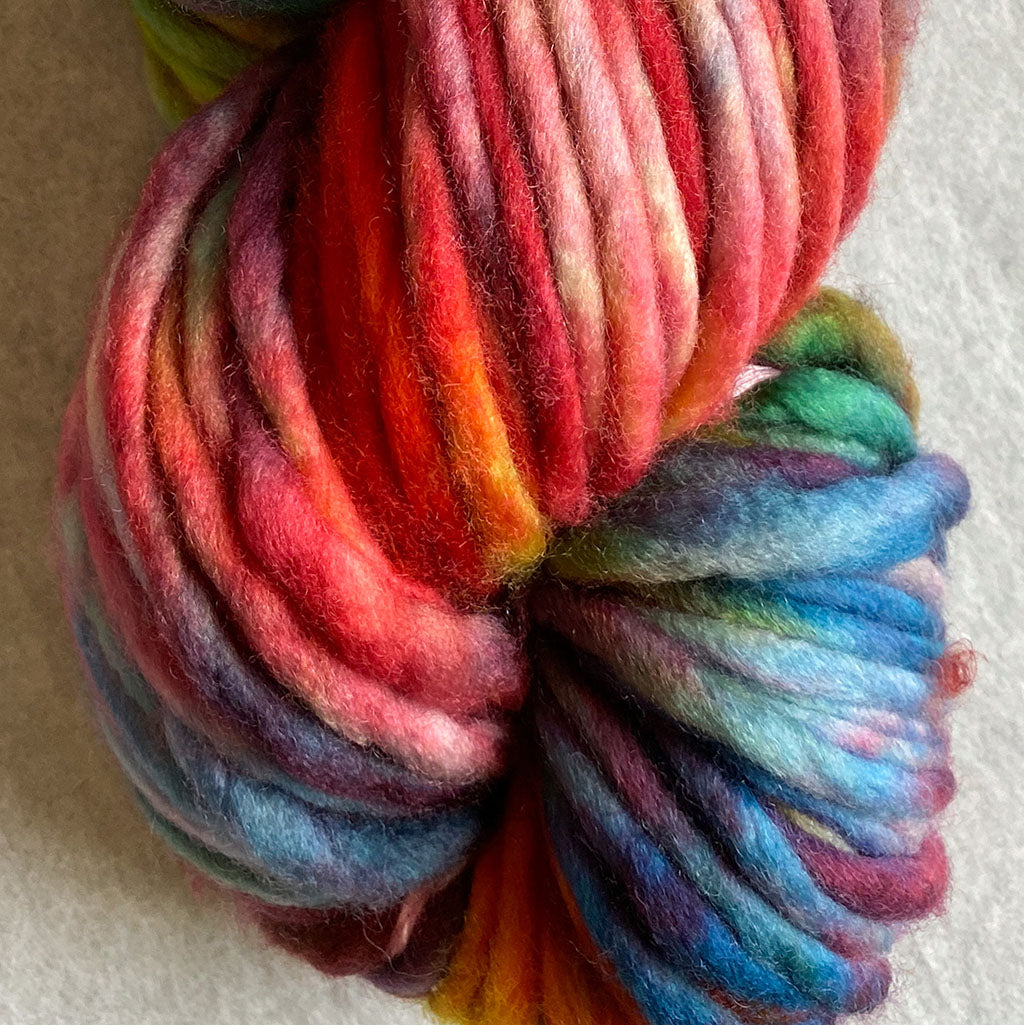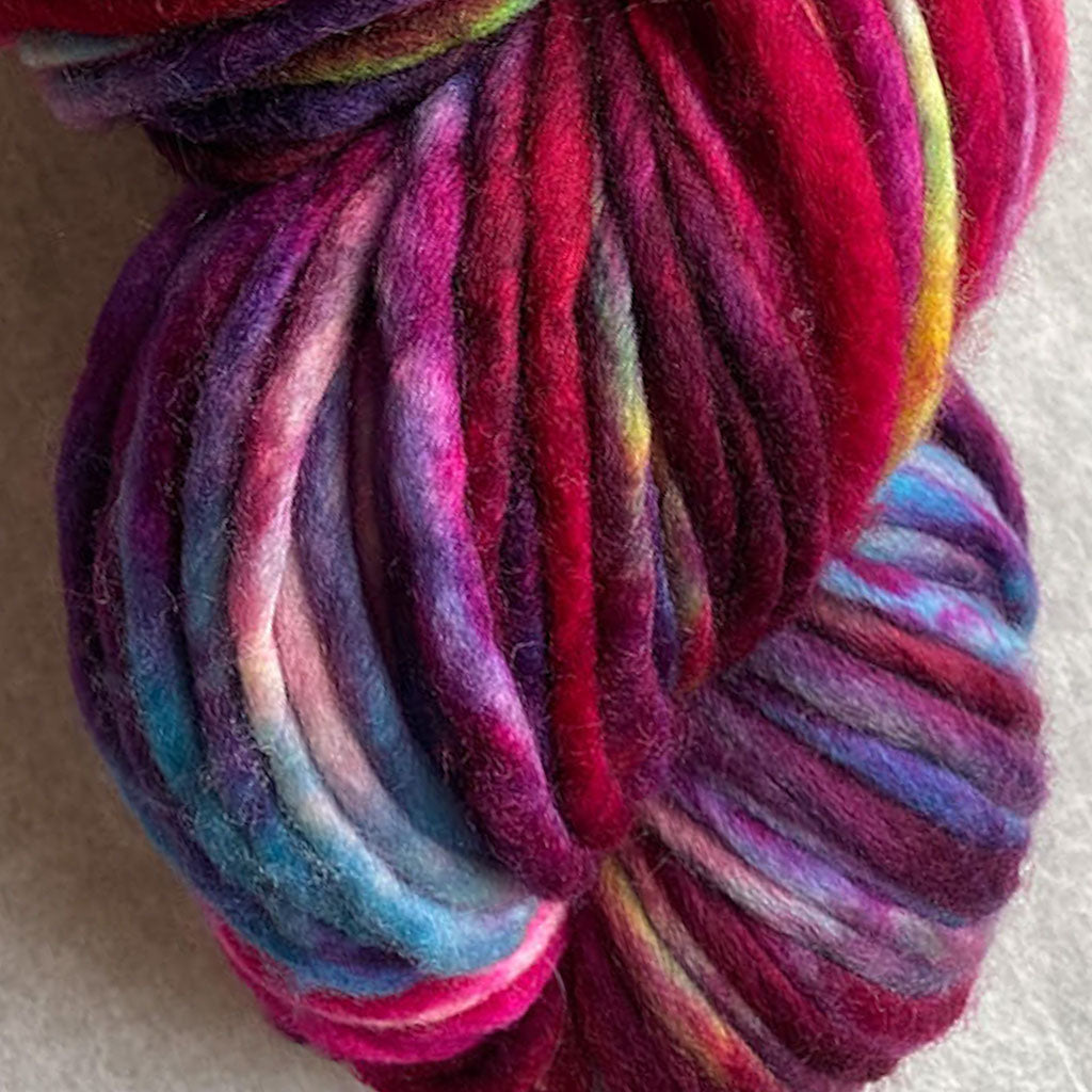 100% superwash merino wool, 227 grams (8 oz), 130 yards, 1.5-2.5 sts per inch