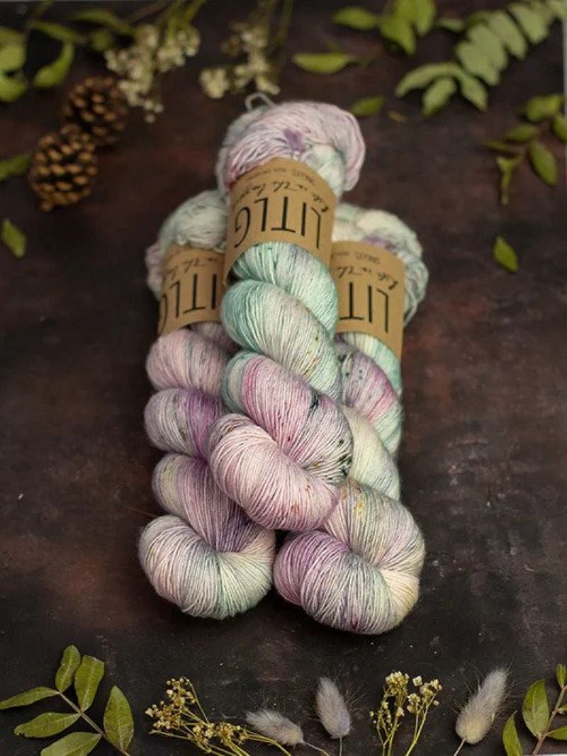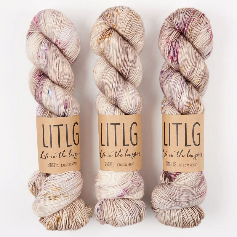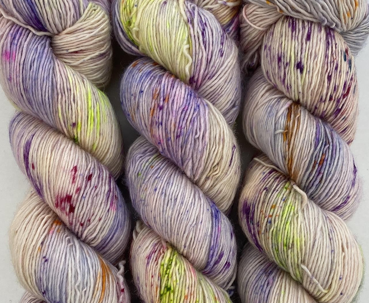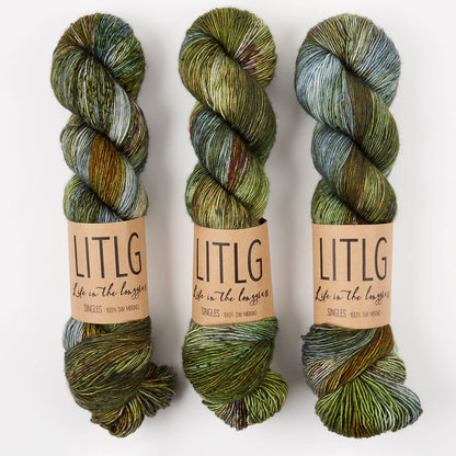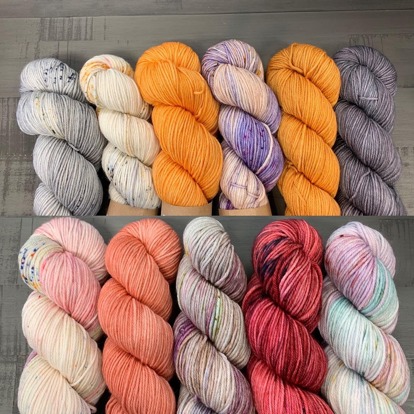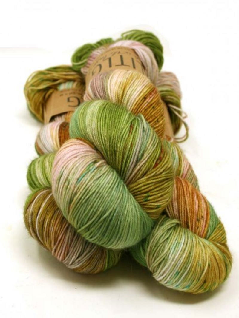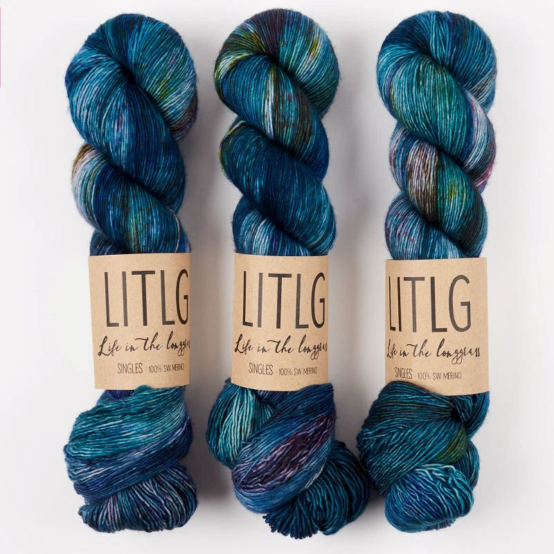 Twist DK from Life in the Long Grass, a heavier yarn weight similar to worsted weight -- a sturdy, structural yarn with good stitch definition and lots of smooth softness. The hand-dyed colors make every single skein