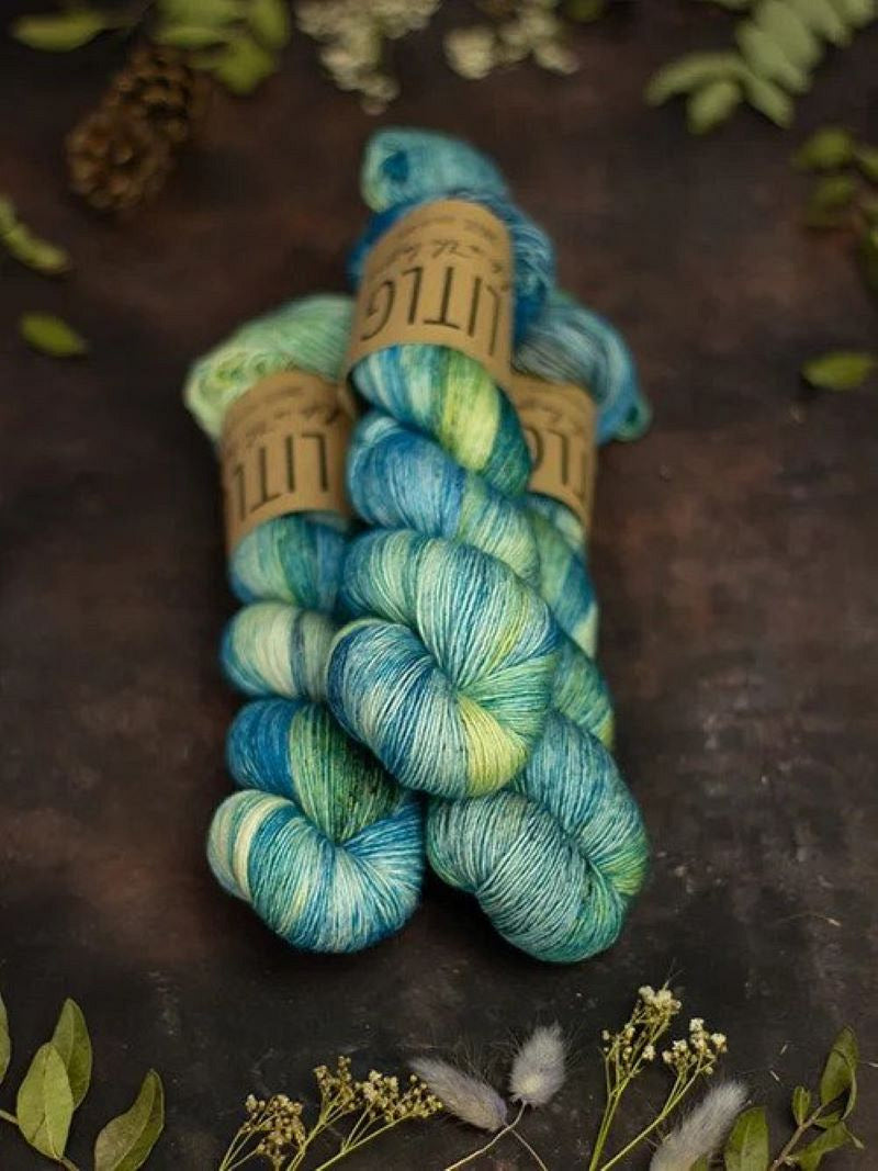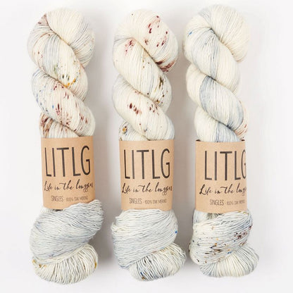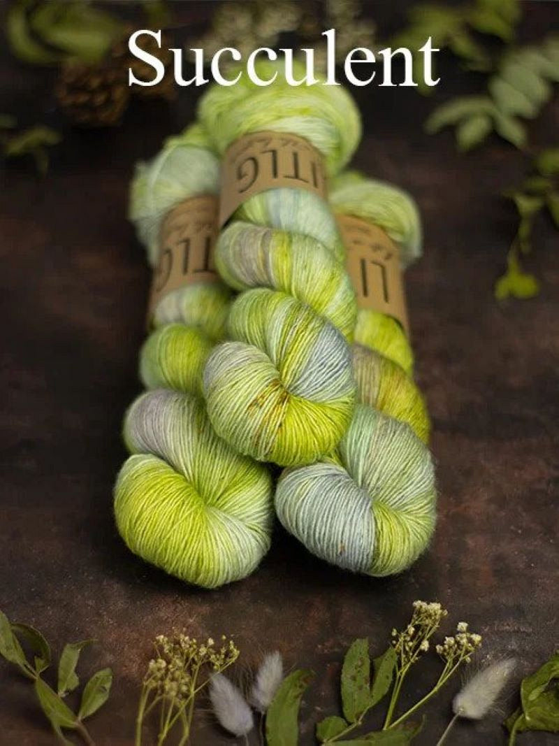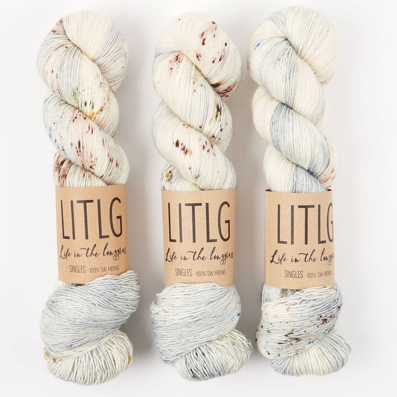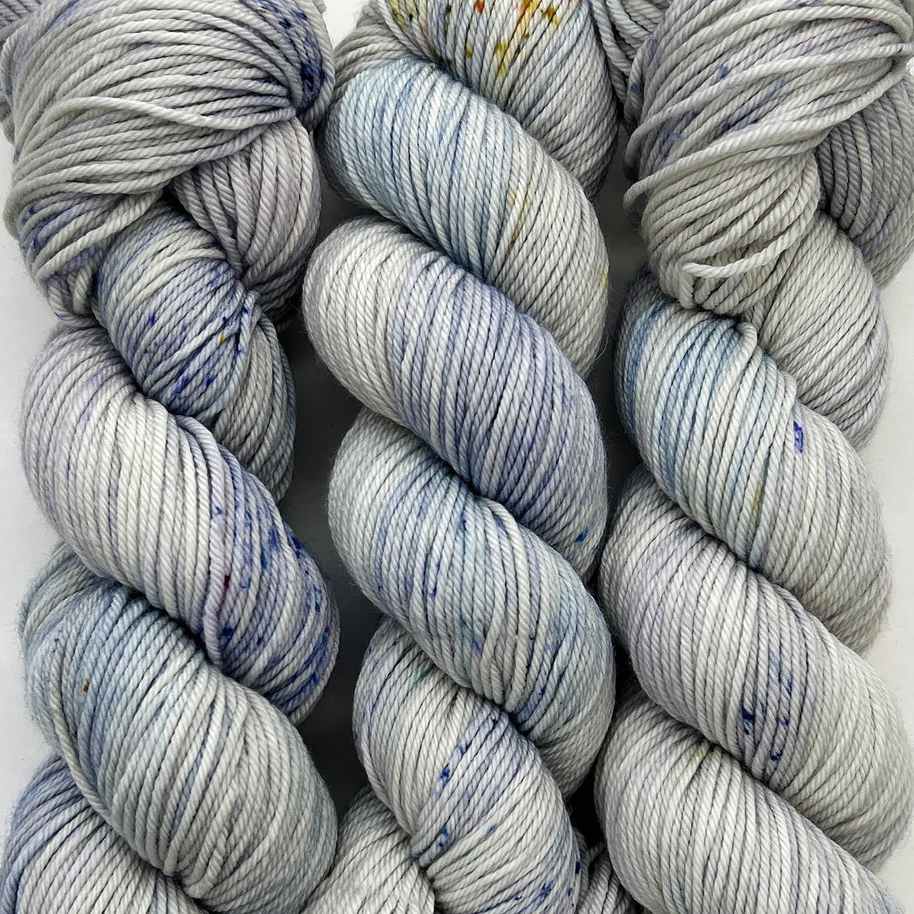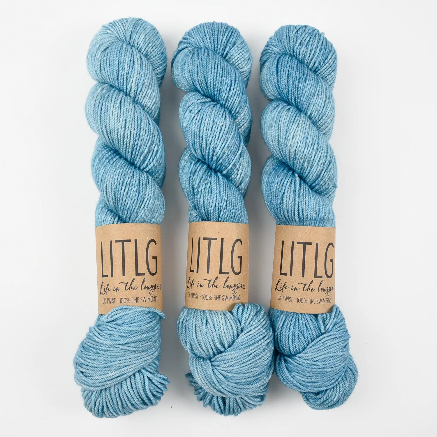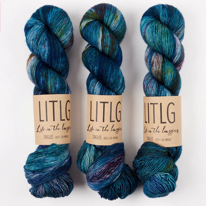 Twist DK from Life in the Long Grass, a heavier yarn weight similar to worsted weight -- a sturdy, structural yarn with good stitch definition and lots of smooth softness. The hand-dyed colors make every single skein