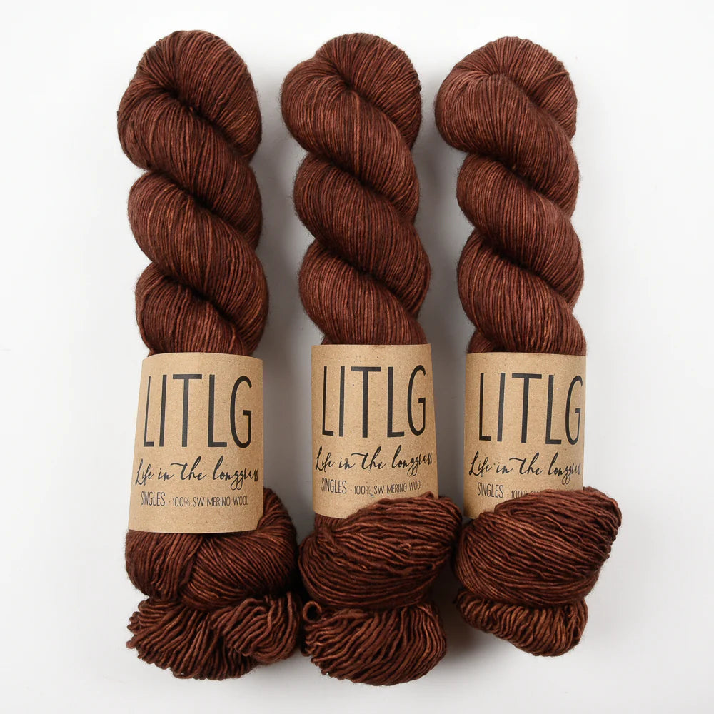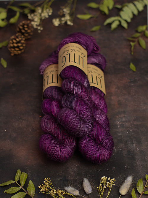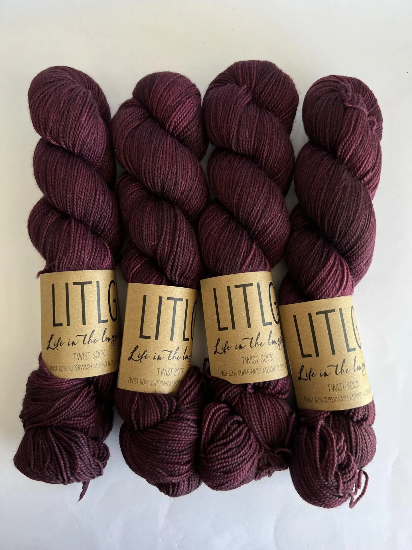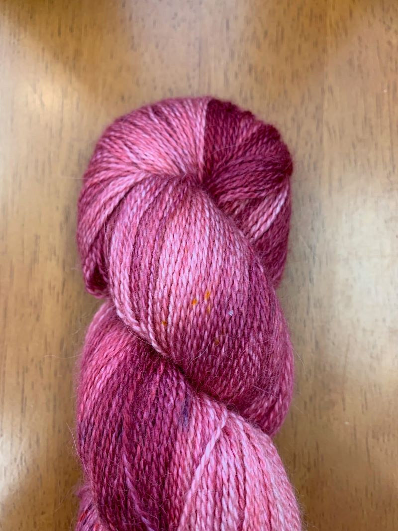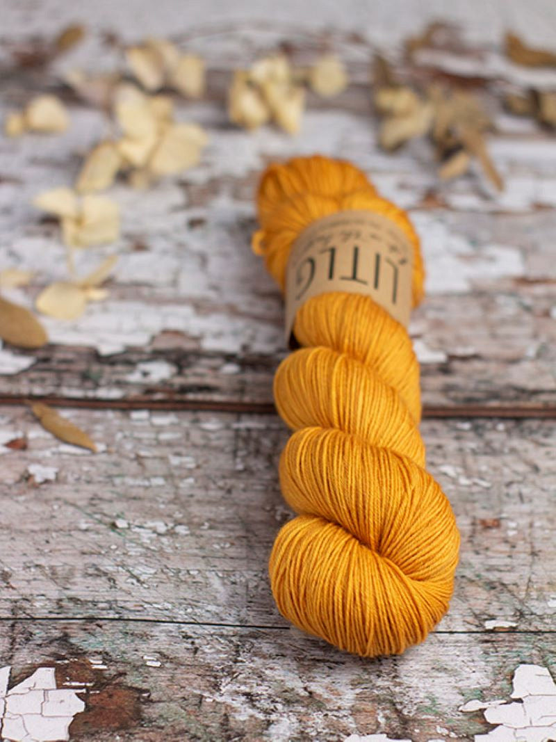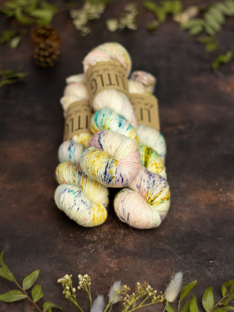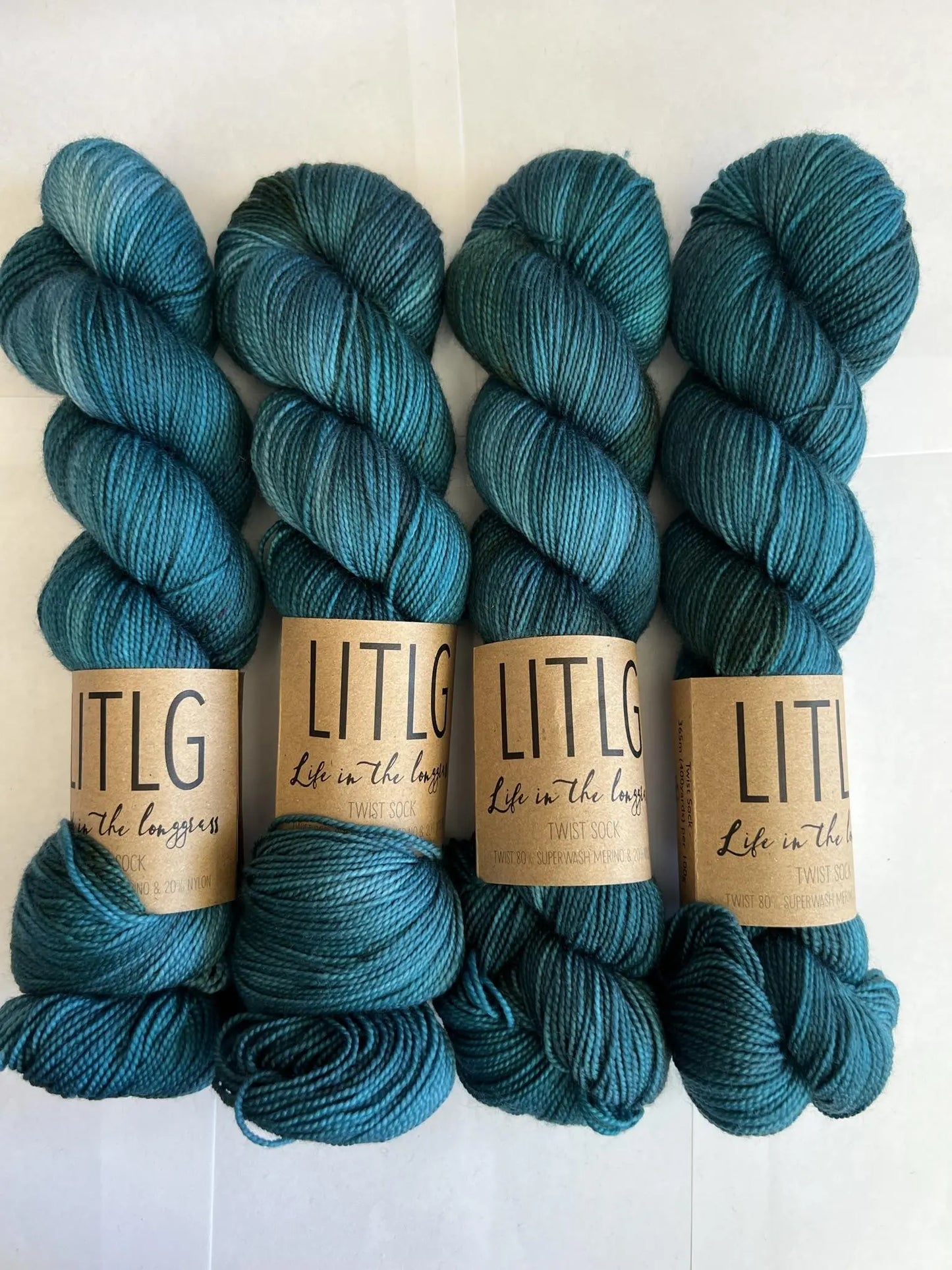 Twist DK from Life in the Long Grass, a heavier yarn weight similar to worsted weight -- a sturdy, structural yarn with good stitch definition and lots of smooth softness. The hand-dyed colors make every single skein