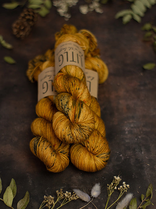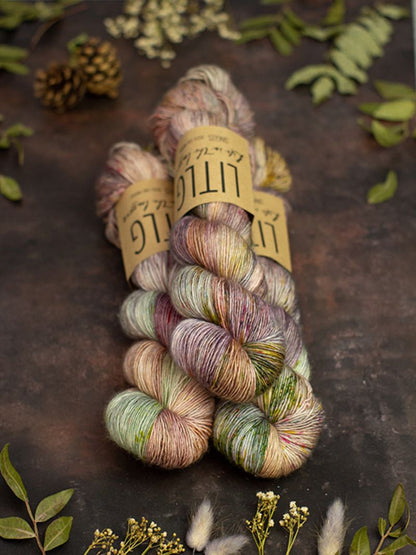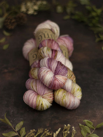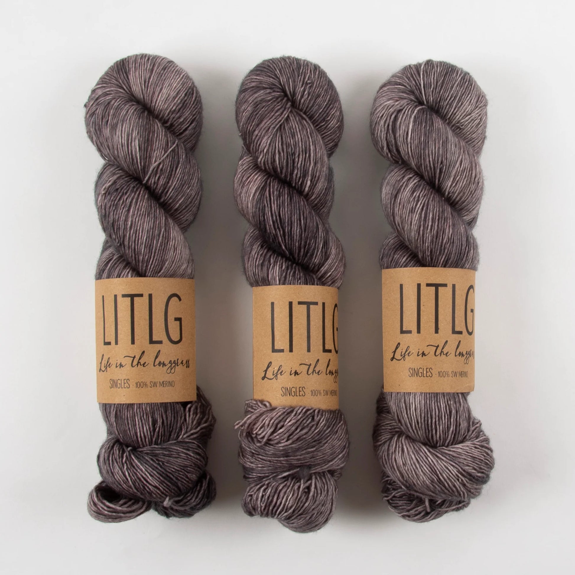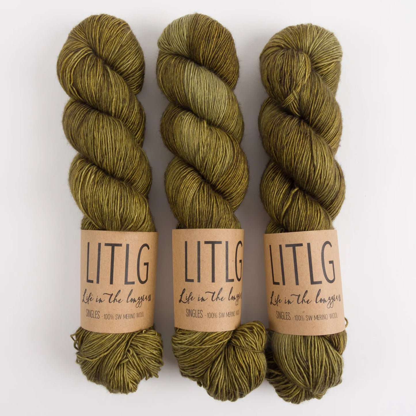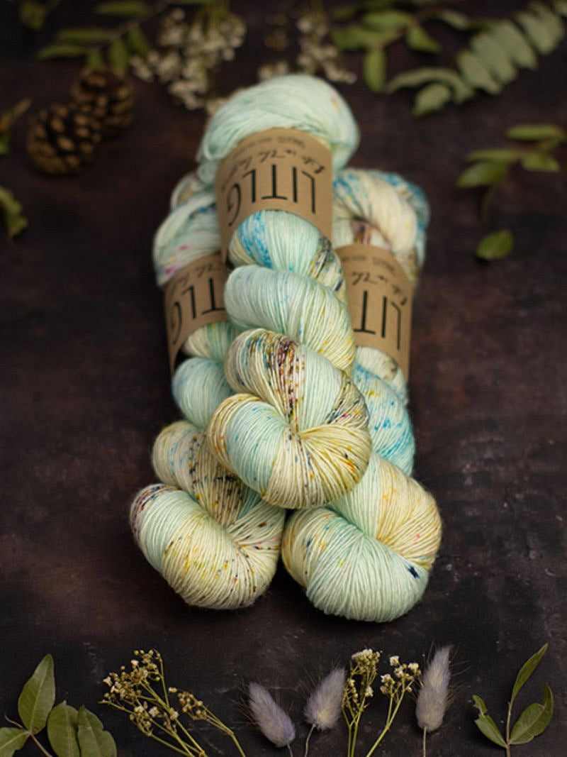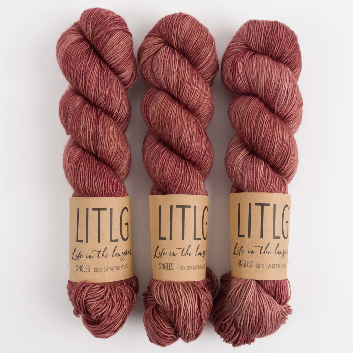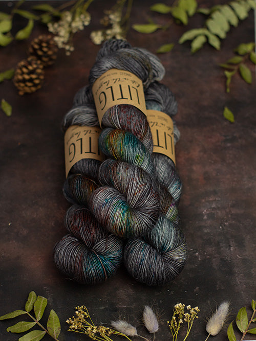 Twist DK from Life in the Long Grass, a heavier yarn weight similar to worsted weight -- a sturdy, structural yarn with good stitch definition and lots of smooth softness. The hand-dyed colors make every single skein