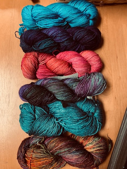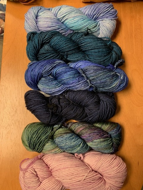 Beautiful colorways of yarn chosen just for you, for Andrea Mowry's beautiful Nightshift shawl pattern! Please head to Ravelry to purchase her pattern straight from the source here!