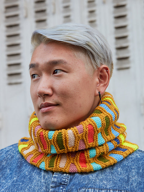 Painting Bricks Cowl pattern pamphlet by Stephen West. For more information on the pattern go here